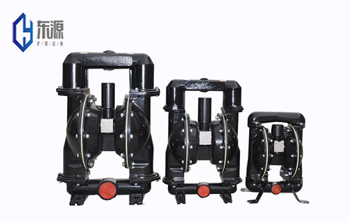 氣動隔膜泵缸頭部分主要由一隔膜片將被輸送的液體和工作液體分開,當隔膜片向傳動機構一邊運動,泵缸內工作時為負壓而吸入液體,當隔膜片向另一邊運動時,則排出液體。被輸送的液體在氣動隔膜泵缸內被膜片與工作液體隔開,只與泵缸、吸入閥、排出閥及膜片的泵內一側接觸,而不接觸柱塞及其密封裝置,這就使柱塞等重要零件完全在油介質中工作,處在良好的工作狀態。
